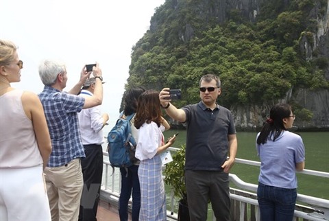 | Des représentants d'agences de presse participant à la 44e réunion du Comité exécutif de l'OANA visitent la baie de Ha Long, le 20 avril à Quang Ninh (Nord-Est). |