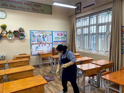 Depuis le 7e jour du Nouvel An lunaire, les responsables et les enseignants des établissements d'enseignement de la province de Quang Ninh (Nord) ont repris le travail, et ont procédé au nettoyage et à la désinfection des surfaces, des tables, des chaises, des salles de classe pour accueillir les élèves.