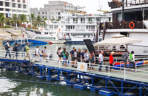 | Des voyageurs étrangers visitent la baie de Ha Long, province de Quang Ninh (Nord). |