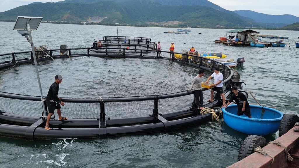 Même dynamique à Phu Trach, où un projet de cages marines en plastique HDPE - le premier du genre dans l’ancienne province de Quang Binh - attire de nombreux pêcheurs côtiers en difficulté. Douze familles y élèvent désormais cobia et mérous sur 5 hectares. Certaines en tirent entre 100 et 200 millions de dôngs par an. Depuis 2024, elles se sont regroupées au sein d’une coopérative pour sécuriser la commercialisation.