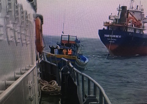 Le bateau de pêche avait donc dû être ancré en place, en raison de fortes pluies et de vents violents à ce moment. Vers 16h00 le 11 janvier, le bateau de pêche a été remorqué à terre par le cargo Thanh Thành Dat 67.