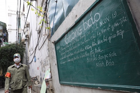 | Zone de quarantaine à la rue Yên Thê, à Hanoï, à la suite de la détection d'un nouveau cas d'infection, le 15 février. |