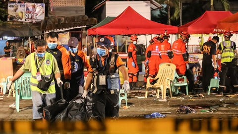 Quatorze personnes ont été tuées et 67 blessées, selon un nouveau bilan fourni par la police. Près des lieux de l'explosion, des corps étaient mêlés aux débris de tables en plastique et de chaises. "La force de l'explosion était telle que j'ai été arraché du sol", a raconté Adrian Abilanosa, dont le cousin a été tué.