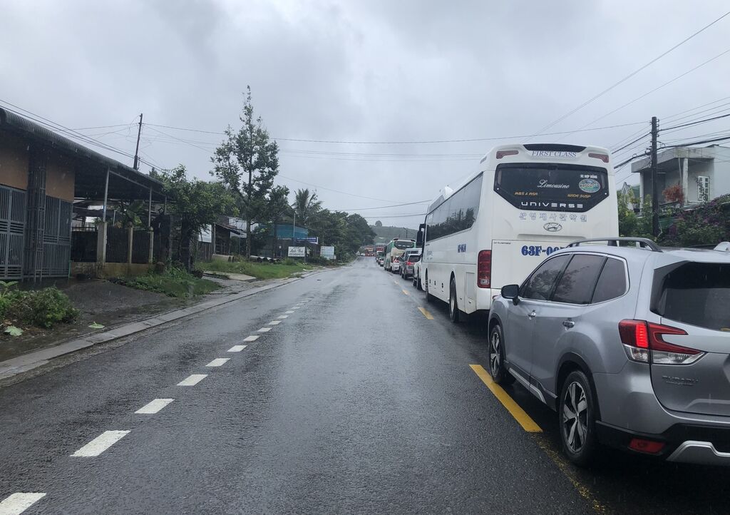 | Files d’attente des voitures sur la route nationale 20 passant à Lâm Dông dans l'après-midi du 30 juillet. |