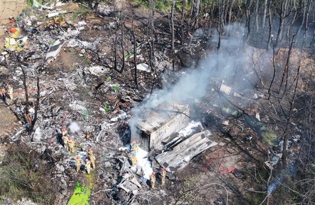 | Sur le lieu d'un accident d'un avion militaire sud-coréen dans la ville de Pohang. |
