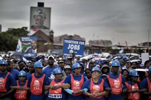 | Une manifestation du parti d'opposition sud-africain Democratic Alliance, pour réclamer des emplois, à Johannesburg le 23 avril. |