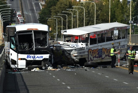 Le bus amphibie de «Ride the Ducks», société de visites guidées présente dans plusieurs villes américaines, gisait en travers du pont mais avait mieux résisté. Le bus amphibie de «Ride the Ducks» est inspiré d’un véhicule militaire de la deuxième guerre mondiale.