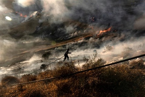 | Un pompier lutte contre les flamme dans un forêt des Troodos à Chypre, le 4 juillet. |