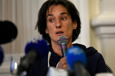 | L'alpiniste française Elizabeth Revol lors d'une conférence de presse à Chamonix (France), le 7 février 2018. |