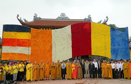| Le plus grand drapeau bouddhiste fait de riz gluant cuit à la vapeur. |
