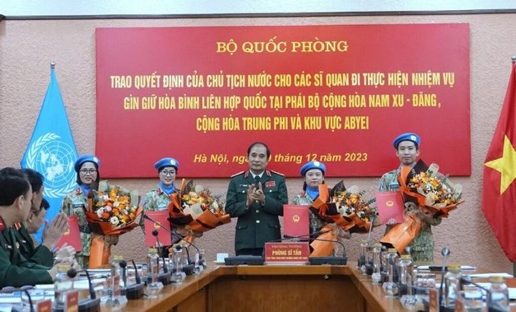 Selon les décisions du président de la République, les femmes militaires Dô Thi Hiêu et Nguyên Phuong Linh iront participer à la MINUSCA, la femme militaire Vu Thi Huong Thuy ira participer à la MINUSS et l’officier Lê Khuong Duy ira participer à la FISNUA, pour remplacer quatre autres Vietnamiens à différents postes.