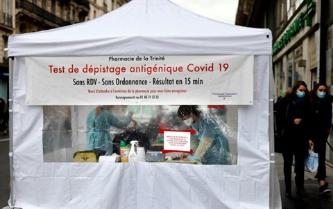 | Une tente de test de dépistage antigénique COVID-19 dans une rue de Paris, le 23 novembre. |