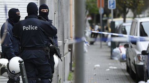 | Des policiers belges dans le quartier Molenbeek à Bruxelles. |
