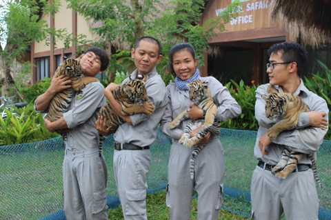 Après 102 jours d’attente, les tigresses du Bengale sont enfin pleines, et elles ont été particulièrement chouchoutées par les équipes du parc. Le 1er juin, date qui coïncidait en plus avec la Journée internationale des enfants, C9 a mis deux petits au monde, et ont été prénommés Phu et Quôc. Huit jours plus tard, c’est au tour de C8 de donner naissance là aussi à deux tigres, Hiêu et Thao.