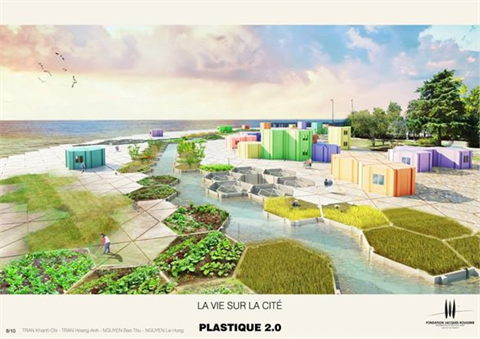 | Quelques images sur le projet «Plastique 2.0. Les septièmes continents au service des migrants climatiques insulaires» des architectes vietnamiens. |