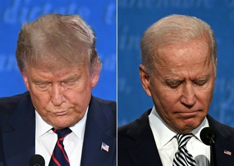 | Donald Trump (gauche) et Joe Biden le 29 septembre à Cleveland lors du premier débat présidentiel. |