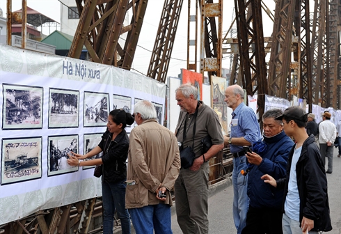 | L’exposition de photos “Hanoi d’antan” sur le pontLong Biên. |