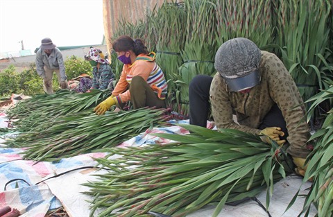| Les agriculteurs récoltent des glaïeuls dans une ferme à la province de Lâm Dông (hauts plateaux du Centre) pour le Têt 2017. |