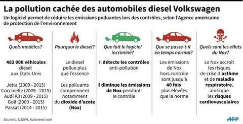 | Réponses à 5 questions sur la pollution cachée de modèles diesel VW vendus aux États-Unis (135x69 mm). |