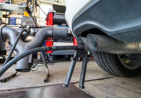 | Contrôle des émissions de gaz sur une Golf TDI diesel dans un garage le 21 septembre à Francfort. |