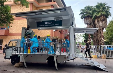 | Une voiture au service de la vaccination contre le COVID-19 à Vinh Long (Sud). |