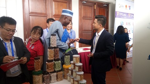 | Échanges entre plusieurs entreprises exportatrices de noix de cajou, dans le cadre d’une des activités de la conférence internationale sur la noix de cajou, tenue les 14 et 15 novembre à l’île Phu Quôc. |