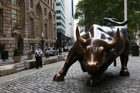 | La statue du taureau de Wall Street, à New York. |