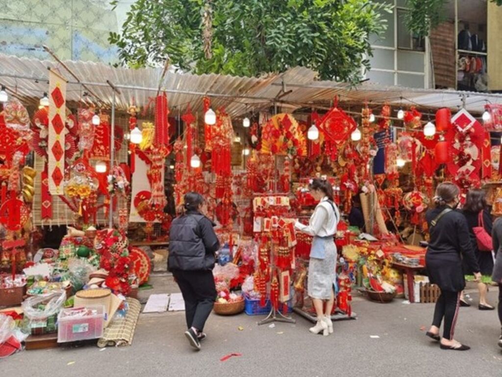 À l’approche du Têt, les rues et les marchés qui proposent des marchandises nécessaires à cette occasion sont en pleine effervescence. On peut citer les rues Hàng Ma, Hàng Buôm, Luong Van Can ; les marchés Dông Xuân, Hàng Bè et celui aux fleurs de Hàng Luoc, entre autres. On peut y trouver en effet toutes les marchandises au service du Têt : décorations, plats traditionnels mais aussi des plantes et des fleurs.