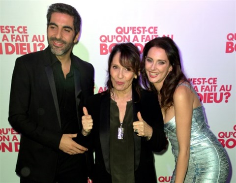 | De gauche à droite: Les comédiens Ary Abittan, Chantal Lauby et Frédérique Bel, au casting du film "Qu'est-ce qu'on a fait au bon Dieu?" de Philippe de Chauveron. |