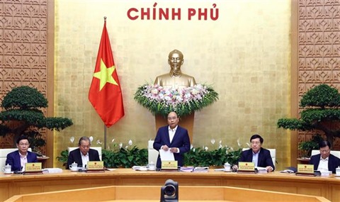 | Le Premier ministre Nguyên Xuân Phuc s'exprime lors de la réunion de février du gouvernement, le 1er mars à Hanoï. |