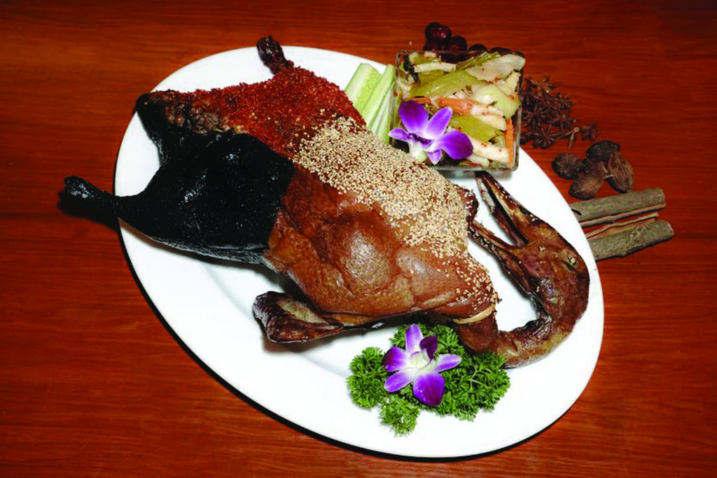 Pour avoir un délicieux canard laqué, le chef choisit un canard à la viande généreuse. Il mélange épices, champignons, jujubes séchés et daikons marinés pour une sauce qui ira dans le ventre du canard, puis ce dernier est mis au repos pour que sa peau sèche pendant de nombreuses heures. Après cela, le canard est recouvert d’une couche de farine puis assaisonné de quatre épices (miel, graines de sésame blanc, poudre de piment et poudre de bambou cendré). L’étape suivante consiste à faire rôtir le canard au four pendant plus d’une heure pour obtenir un produit fini absolument délicieux.
