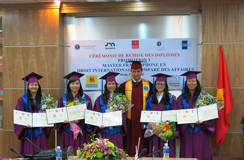 À cette promotion, douze étudiants français ont également reçu ce master en France. Ce programme est réalisé par cinq universités : Université de droit de Hô Chi Minh-Ville, Université Jean Moulin Lyon 3, Université Montesquieu Bordeaux 4, Université Toulouse I Capitole et Université libre de Bruxelles.