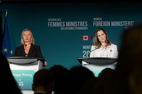 Cette décision illustre selon Mme Freeland la "politique étrangère féministe" canadienne voulue par le gouvernement de Justin Trudeau. Mme Freeland a rendu hommage au passage à l'inspiratrice de cette forme de diplomatie, la ministre suédoise des Affaires étrangères Margot Wallström, présente à la conférence de Montréal.