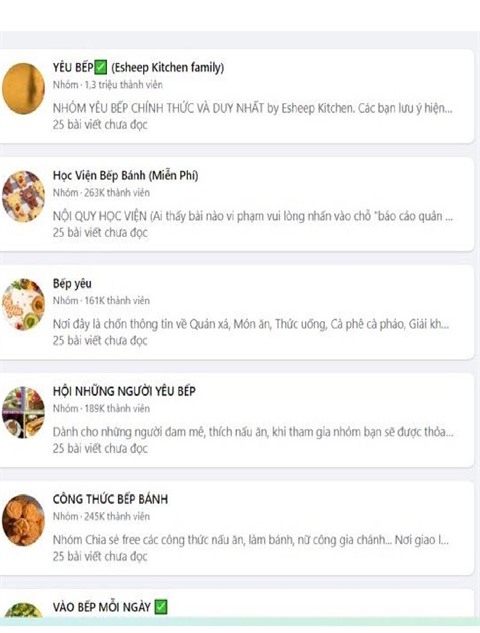 | Groupes de cuisine avec beaucoup de membres. |