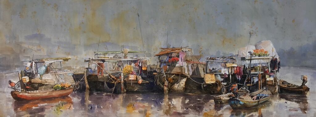 Chaque artiste apporte des histoires uniques difficiles à reproduire et utilise des matériaux très différents. Bùi Tiên Tuân, par exemple, présente des peintures sur soie modernes, à la fois esthétiques et innovantes, qui ont suscité une attraction particulière sur le marché depuis 15 ans. Il est considéré comme un nouveau maître de la peinture sur soie vietnamienne.