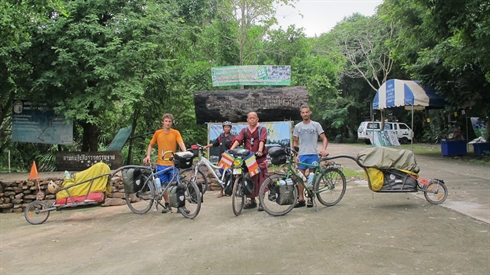 | Jean-Charles Amalric (à gauche) et Benjamin Amalric sur la route, en Thaïlande. |