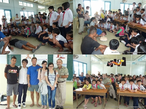 | Initiation au secourisme à l’école Phuong Bình Hung de Binh Tân, avec l’association «Les Enfants du Dragon». |
