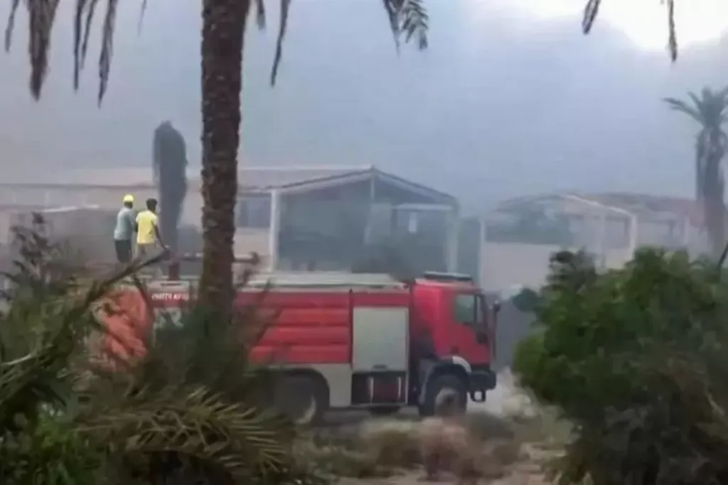 | Un camion de pompiers se dirige vers la centrale électrique de Ras Kutaib, à Hodeida, après qu'elle a été touchée par des frappes israéliennes, photo diffusée le 26 décembre par le centre des médias des Houthis. |