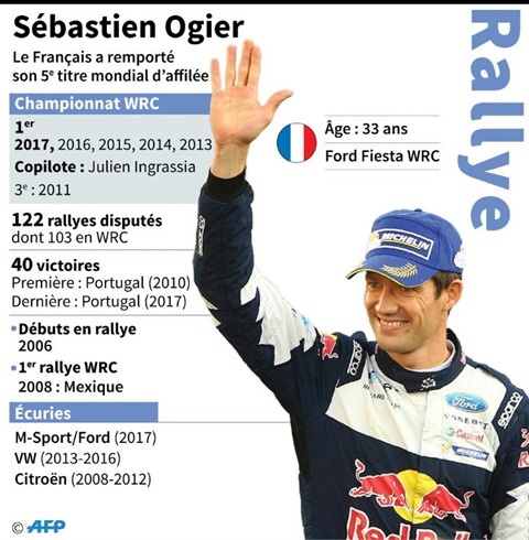 | Palmarès de Sébastien Ogier qui a remporté son 5e titre mondial en terminant 3e du rallye de Grande-Bretagne |