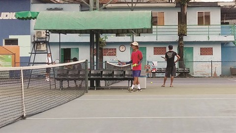 À 13h30. Assis sur un banc en pierre caché derrière les arbres du Club de tennis Ky Hoà du 10e arrondissement de Hô Chi Minh-Ville, Âu Tri Thành déjeune, en gardant un œil sur sa montre pour ne pas rater son créneau de ramassage de balles.