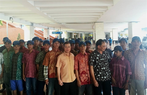 | Le premier secrétaire de l'ambassade du Vietnam en Indonésie, Trân Minh Cu, a accompagné les 26 pêcheurs vietnamiens jusqu’à l’aéroport Soekarno-Hatta. |