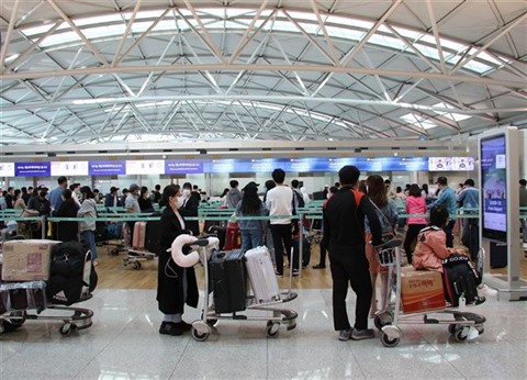 | Des pasagers font des formalités à l'aéroport Incheon (République de Corée). |