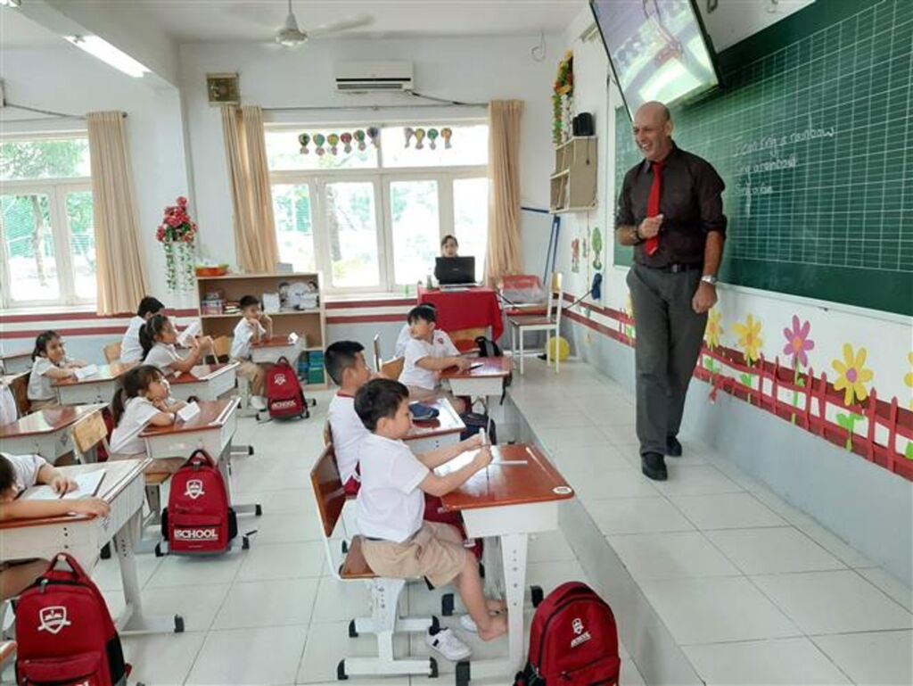 | Dans une classe d'anglais à l'École primaire iSchool à Long An (Sud). |