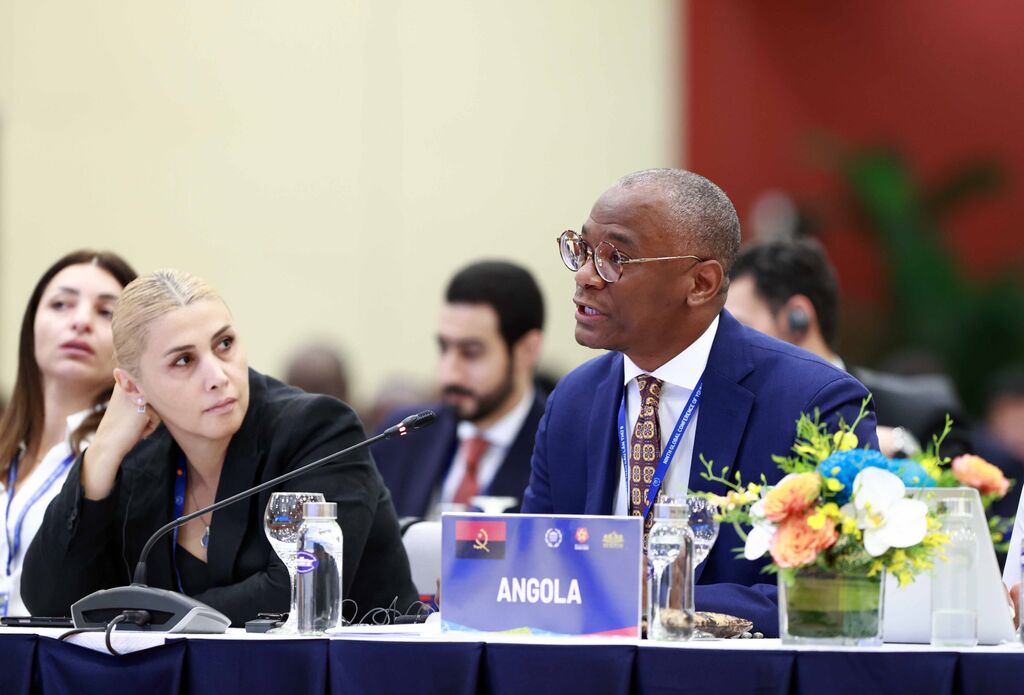 | Un représentant de la délégation angolaise s'exprimant à une séance de débat dans le cadre de la 9e Conférence mondiale des jeunes parlementaires, le 16 septembre à Hanoï. |