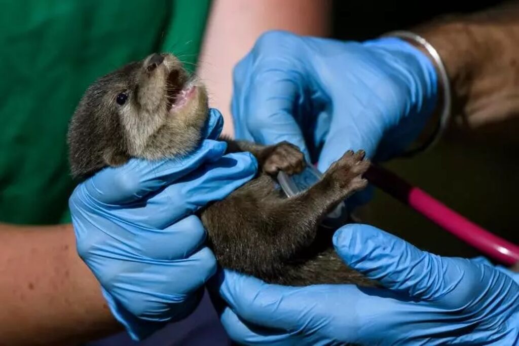 Les petites loutres, qui reçoivent aussi à cette occasion une puce d'identification, "ne vont pas rester chez nous, elles vont partir dans d'autres parcs zoologiques et l'identification a du sens pour la conservation des espèces et éviter le trafic d'animaux", ajoute-t-il.