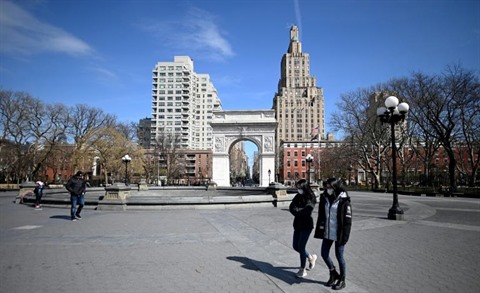 | La place de Washington Square, au cœur de Greenwich Village à New York, désertée le 16 mars |
