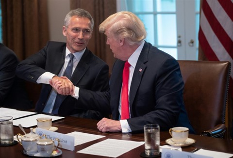 | Le secrétaire général de l'OTAN Jens Stoltenberg (gauche) et le président américain Donald Trump à Washington, le 17 mai. |