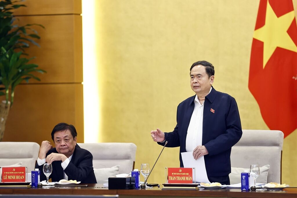 | Le membre du Politburo, secrétaire du Comité du Parti de l'Assemblée nationale, Trân Thanh Mân, également président l’AN, lors de la réuniuon. |