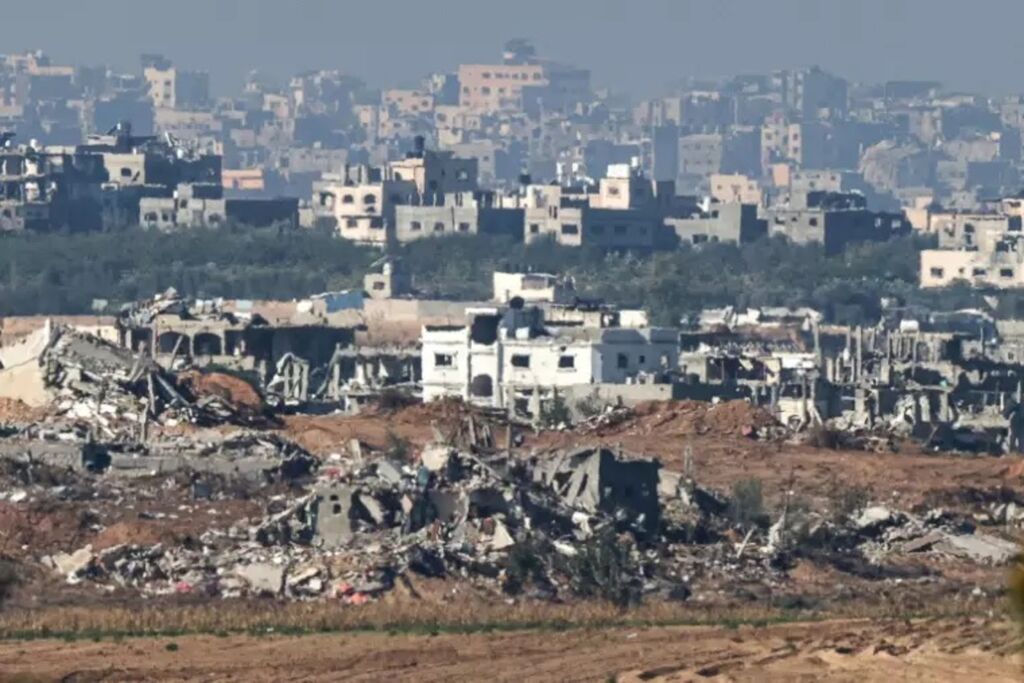 | La bande de Gaza en ruines, vue depuis le sud d'Israël le 15 décembre. |
