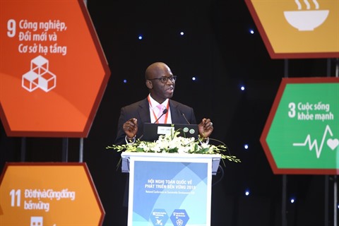 | Ousmane Dione, directeur de la BM au Vietnam, prend la parole lors de la conférence, le 5 juillet à Hanoï. |